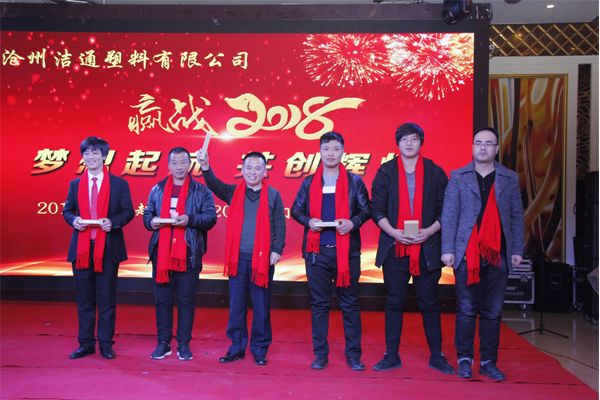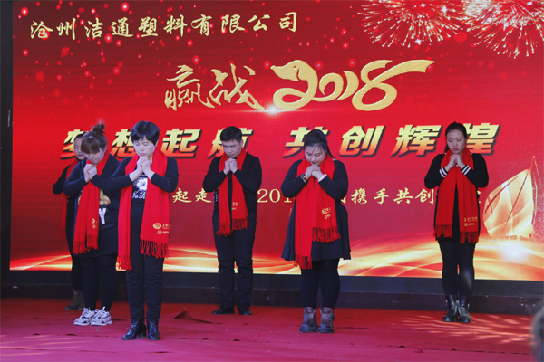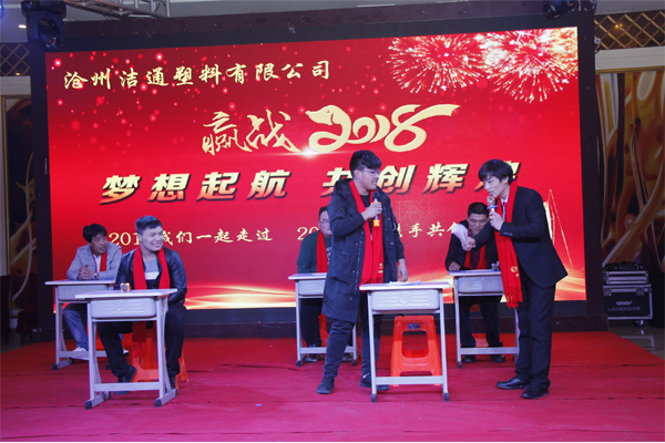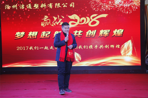 冬去春回又一載,似水流年旺年來。2018年2月12日下午,滄州潔通塑料有限公司2017年年會在正達(dá)大西洋酒店隆重舉行。潔通公司全體員工歡聚一堂,在熱情、溫馨、歡樂的氣氛中回首2017年取得的成績,共同迎接2018年的到來。
